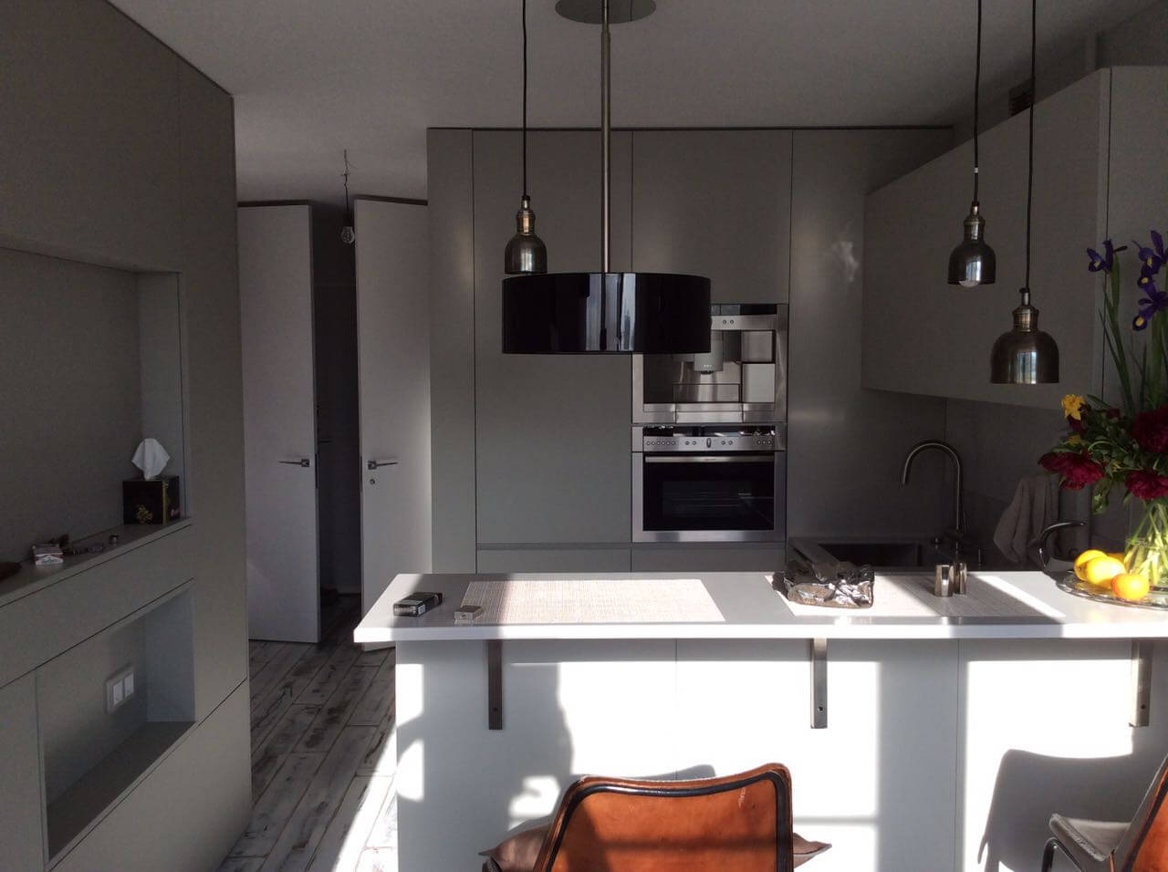 Кухня “Вонгола” в стиле модерн под заказ от компании ЛАДОС МЕБЕЛЬ. Кухня изготовлена из МДФ с матовой отделкой с применением матовой полиуретановой эмали FO 05M060. Основными преимуществами эмали являются: