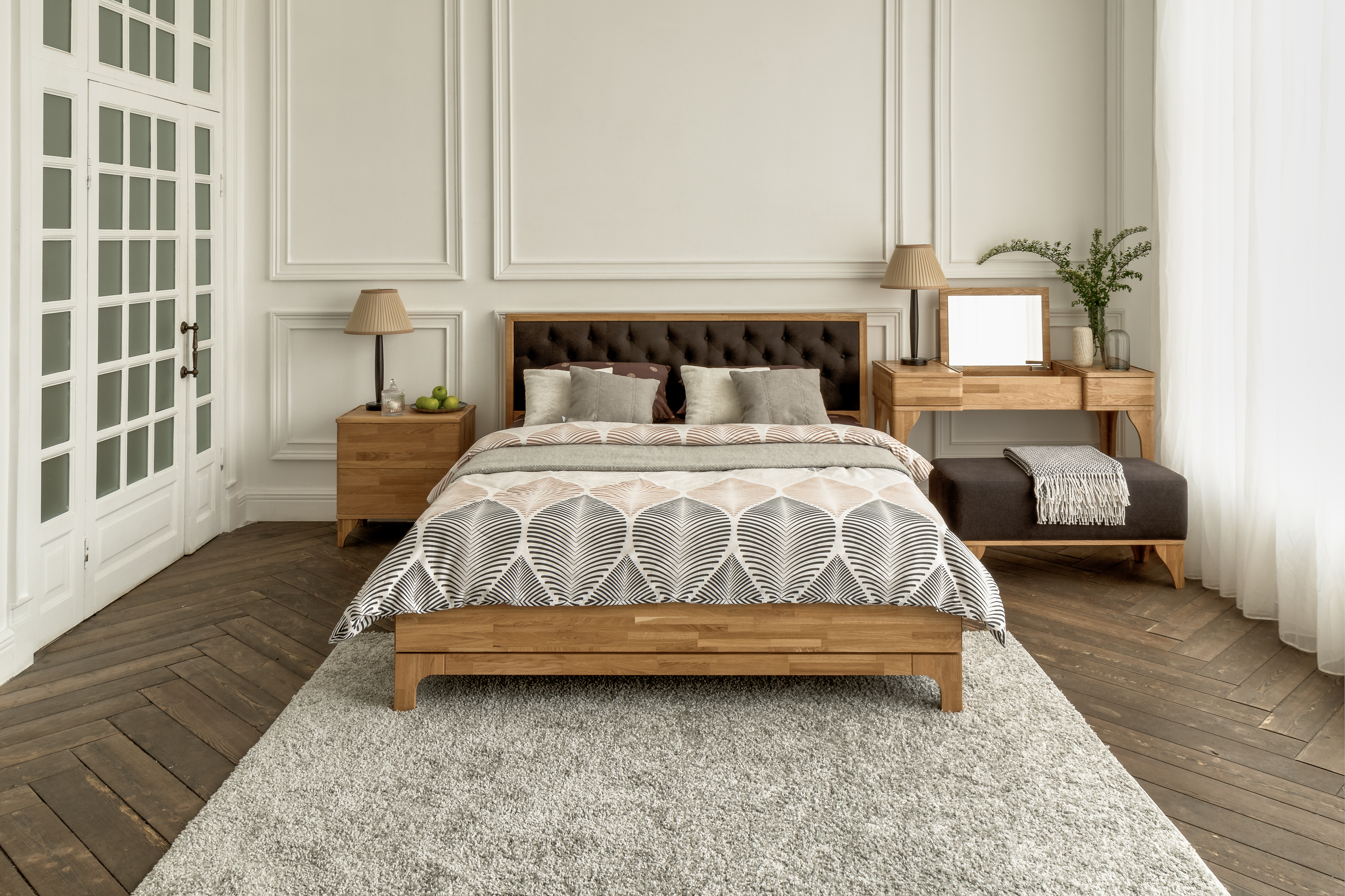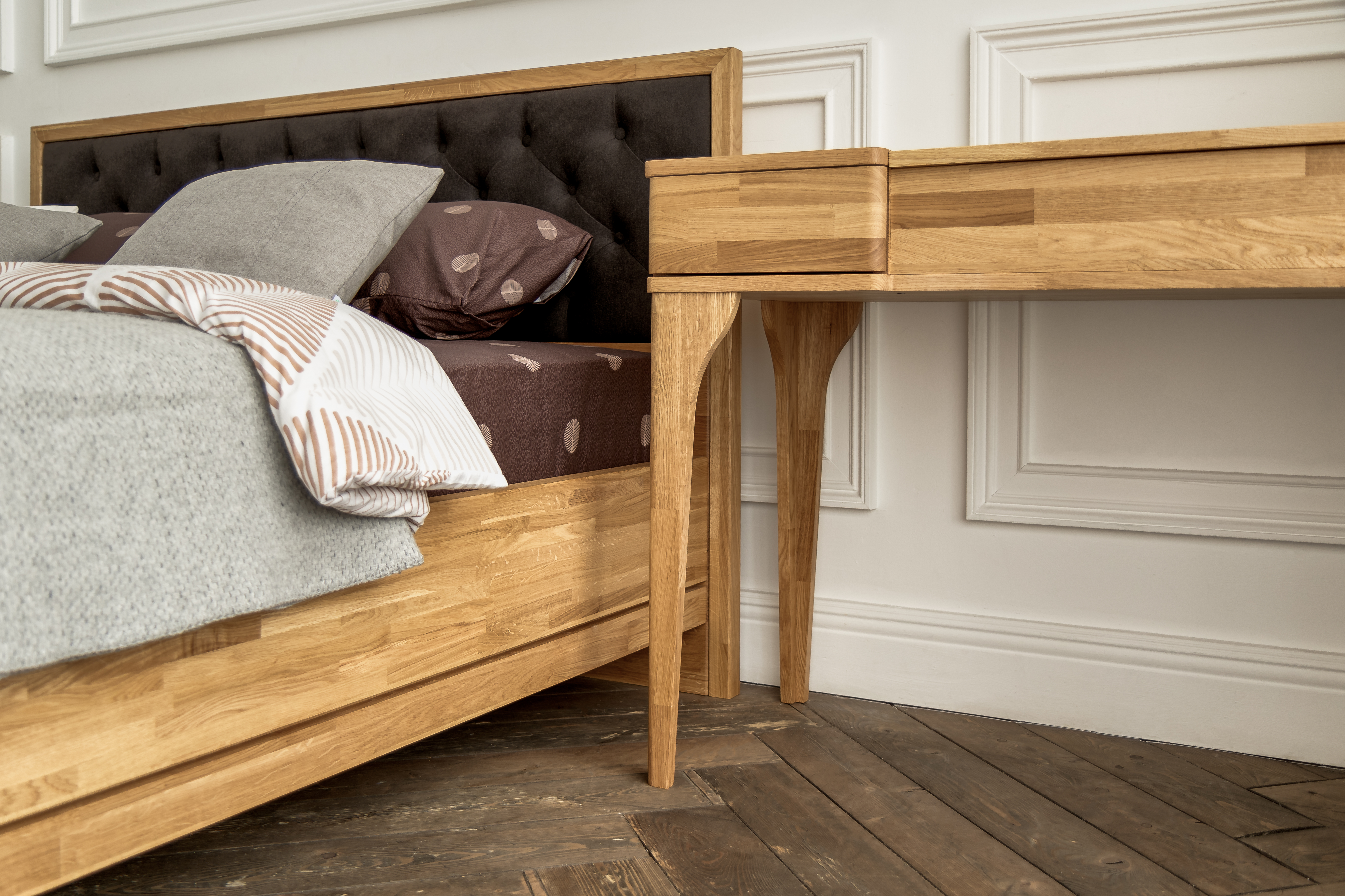 На фото мебель из массива дуба в покрытии масло-воск. Окрашено материалами RENNER.