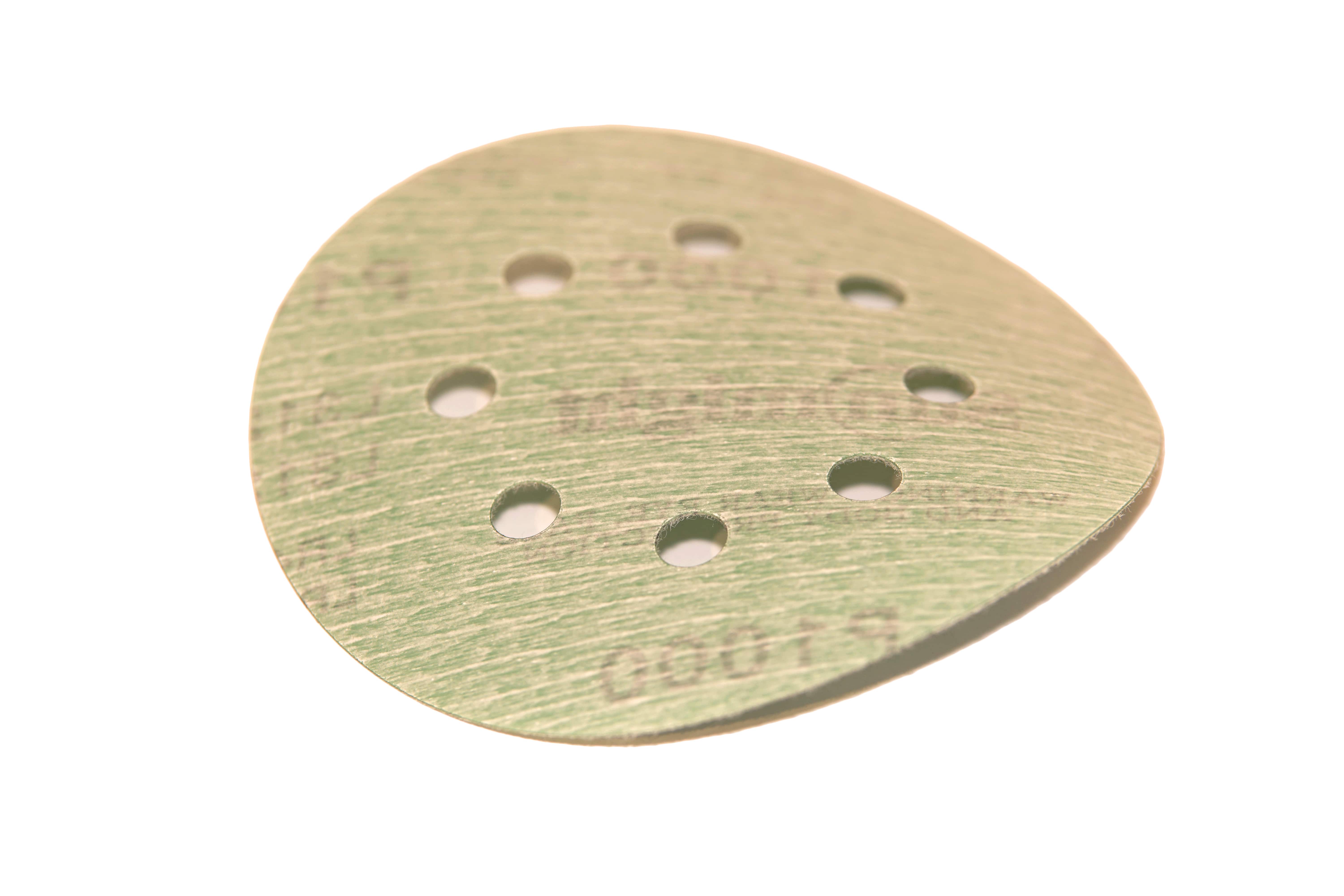 Шлифовальные круги Sunmight серии L312T зеленые, в их основе лежит синтетическая плёнка. Используются для сухого шлифования различных лакокрасочных материалов, металла, композитов, наполнителей, шпатлевок, твёрдой древесины. За счет износостойксти абразивного материала обладают высокими режущими свойствами и увеличенным сроком службы. При обработке сложных профилей диск не деформируется. Круг имеет высокую режущую способность. Абразив устойчивый к разрушению и не забивается во время шлифования. Используется на необработанной или окрашенной древесине, а так же на различных поверхностях при кузовном ремонте