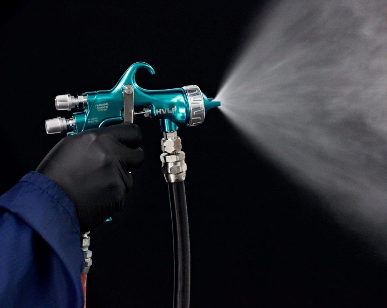 Технология HVLP (High Volume – Low Pressure) подразумевает использование большого потока воздуха под низким давлением (порядка 0,7 бар). Коэффициент переноса краски для оборудования данного класса составляет порядка 65%. Пистолеты HVLP значительно дороже, поскольку технология их производства довольно сложна. Они оснащаются особыми воздушными каналами и высокотехнологичным соплом, позволяющим сделать окрасочный факел гораздо более равномерным и стабильным.