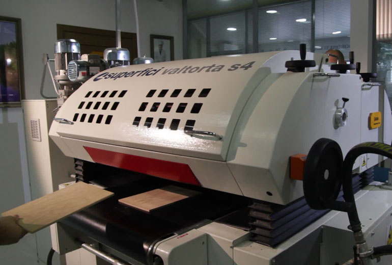 Помимо этого, в станке есть два щеточных вала для нанесения морилок. Они втирают морилки в поры. Чаще всего вальцовый станок покупают производители щитов, паркета и других изделий с ровной поверхностью.
